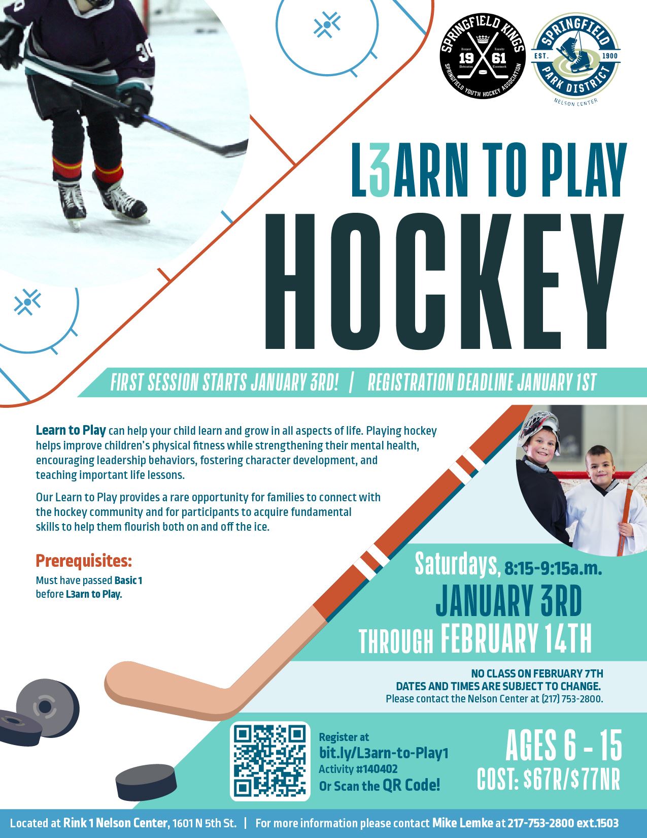 Jan03 Learn to Play Hockey Does your child dream of hitting the ice like a pro? The Springfield Park District’s Learn to Play Hockey program is the perfect way to start! Read more about Learn to Play Hockey on 1/3/2026