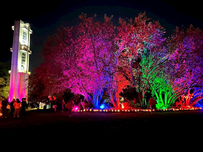 Enjoy sparking splendor of thousands of lit jack-o-lanterns surrounding the Carillon and Botanical Gardens at Washington Park.