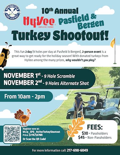 This fun 2 day (9 holes per day at Pasfield & Bergen), 2-person event is a great way to get ready for the holiday season! With donated turkeys from HyVee among the many prizes, why wouldn't you play?